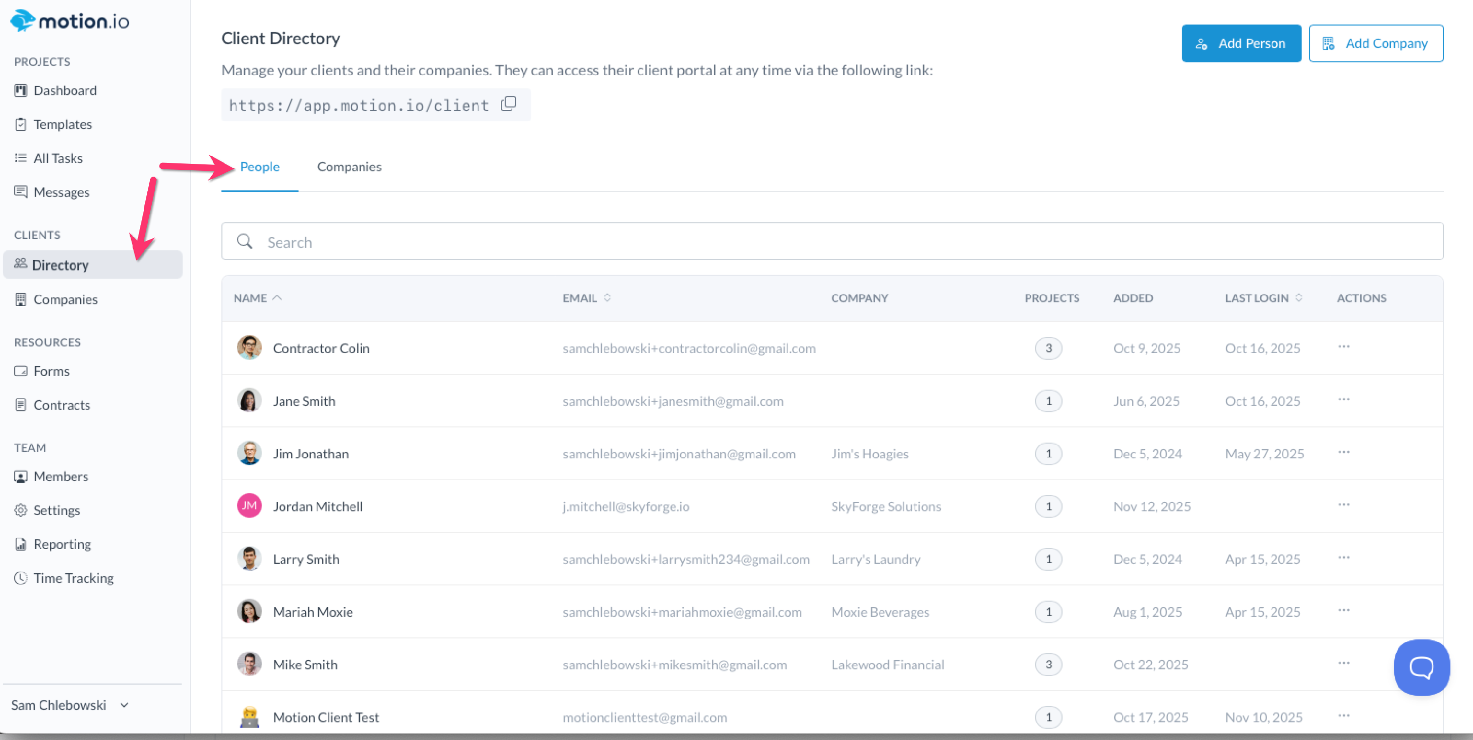 This article will explain how to create and manage people in Motion.io's Client Directory and the information you can access.