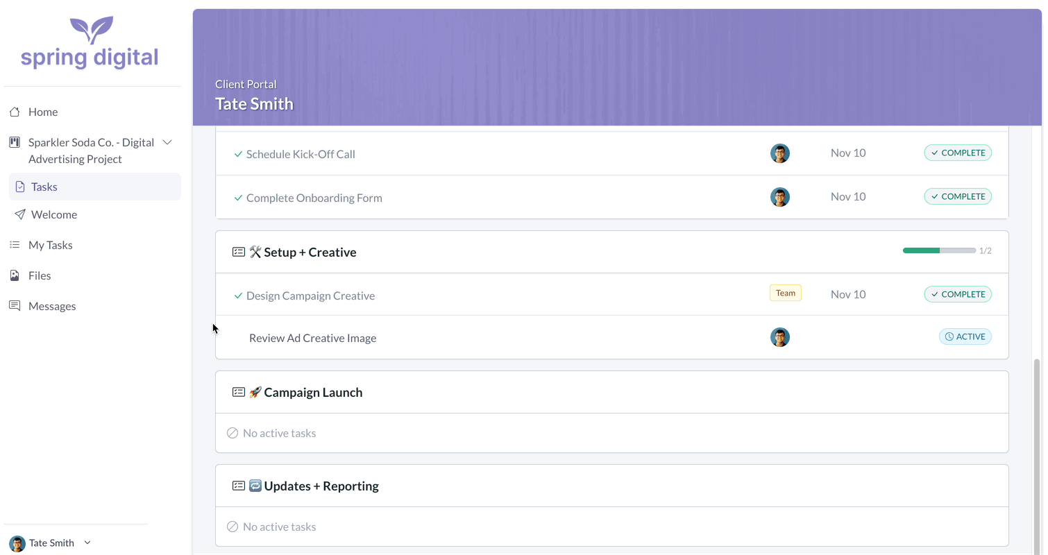 If the task includes multiple files, the client must review each one before they can complete the task. Once done, the task is automatically marked complete in your admin dashboard.