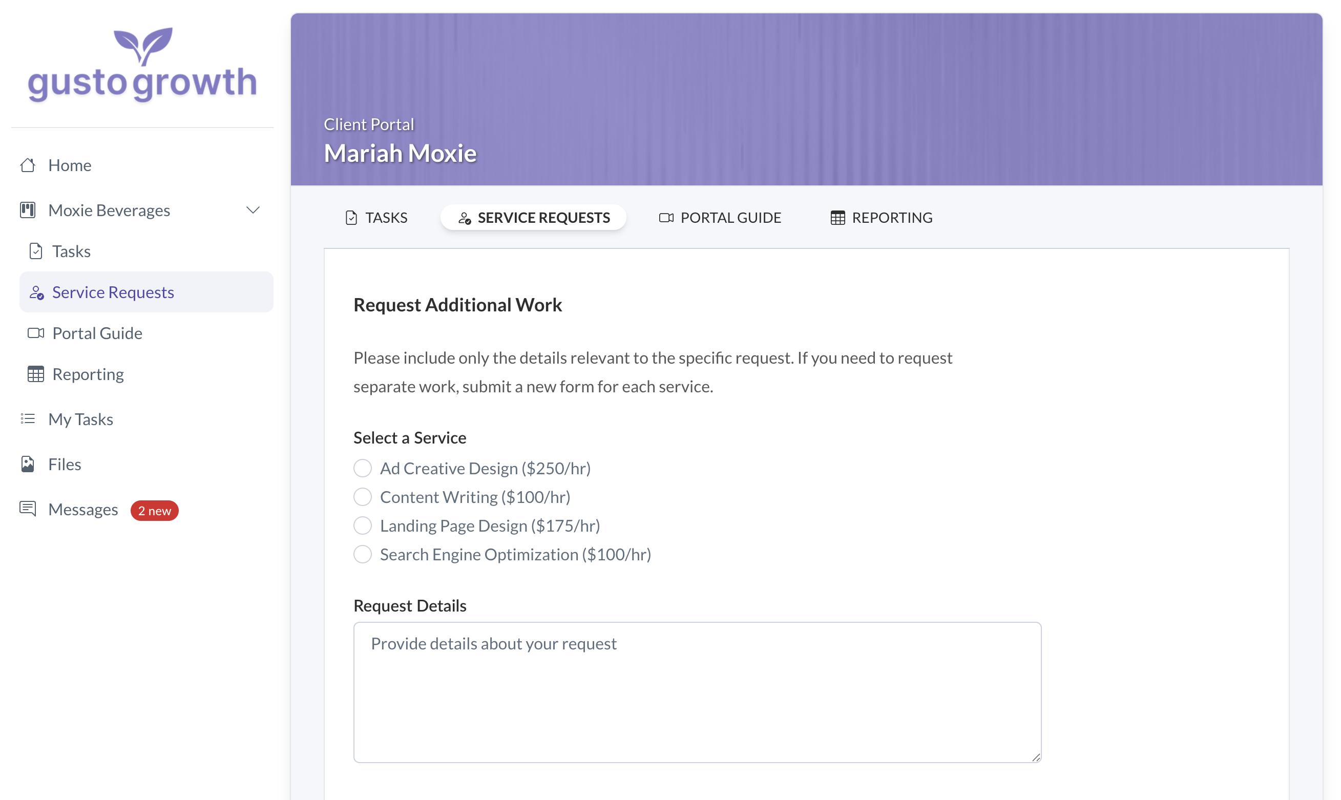 This article will walk you through how Client Request Forms in Portal Tabs work, how to set them up, how your clients interact with them, and how your team reviews and completes the tasks generated from each submission.