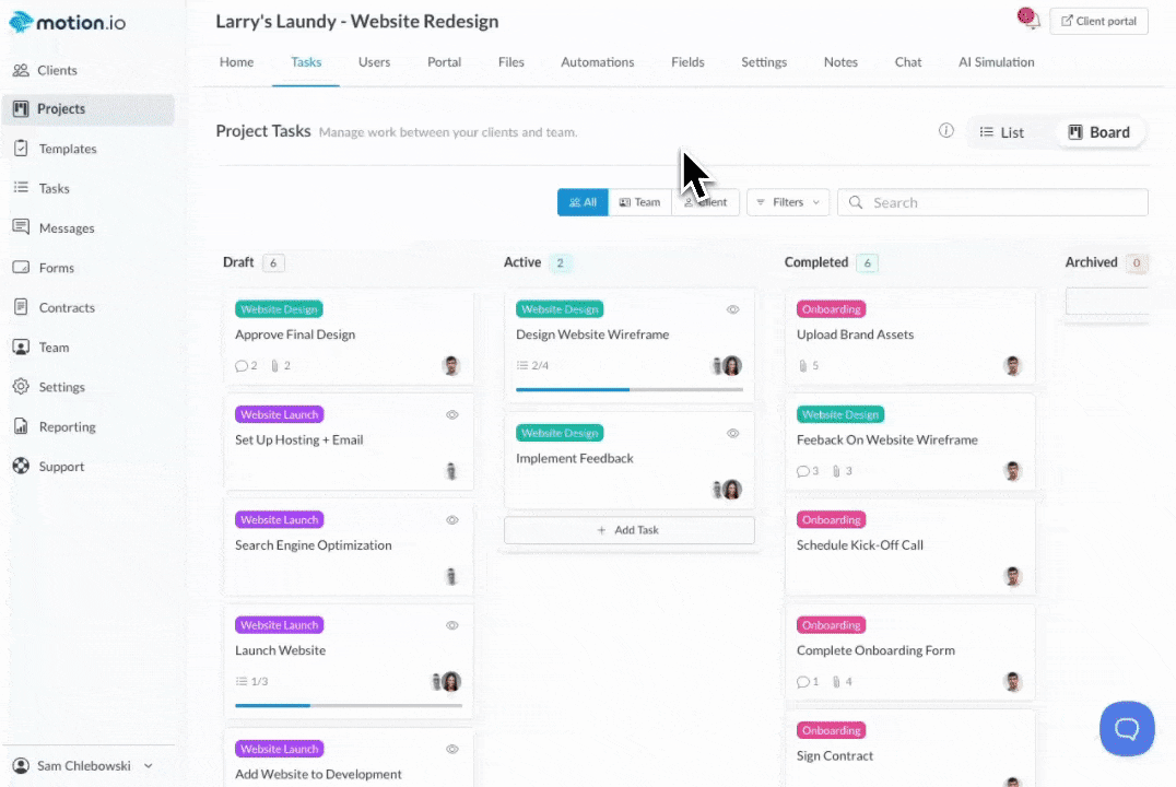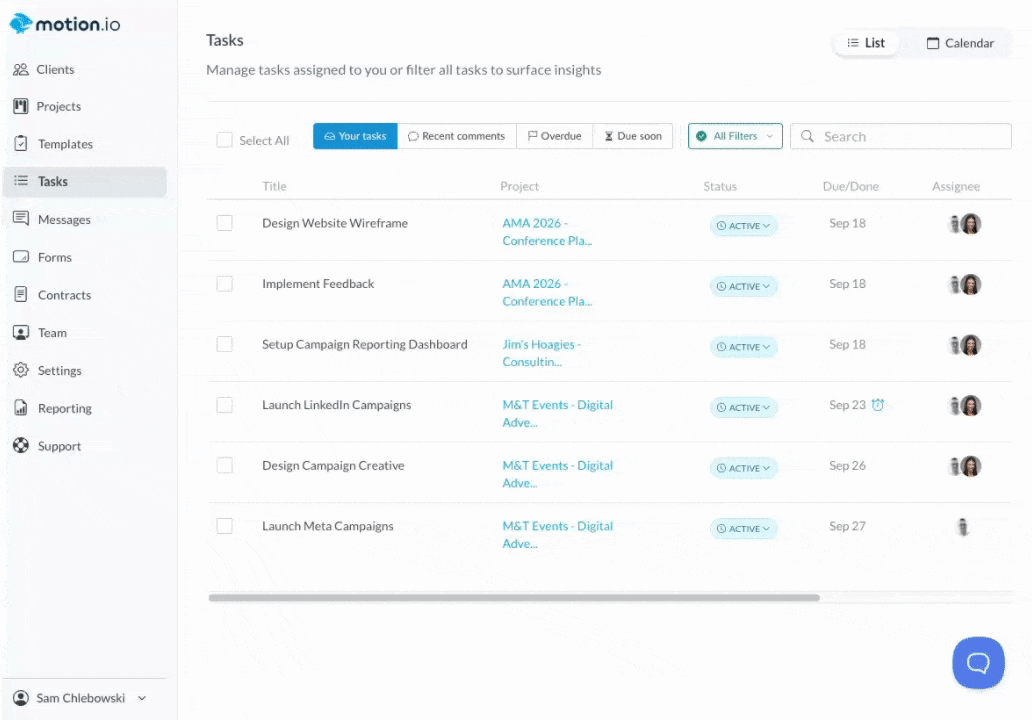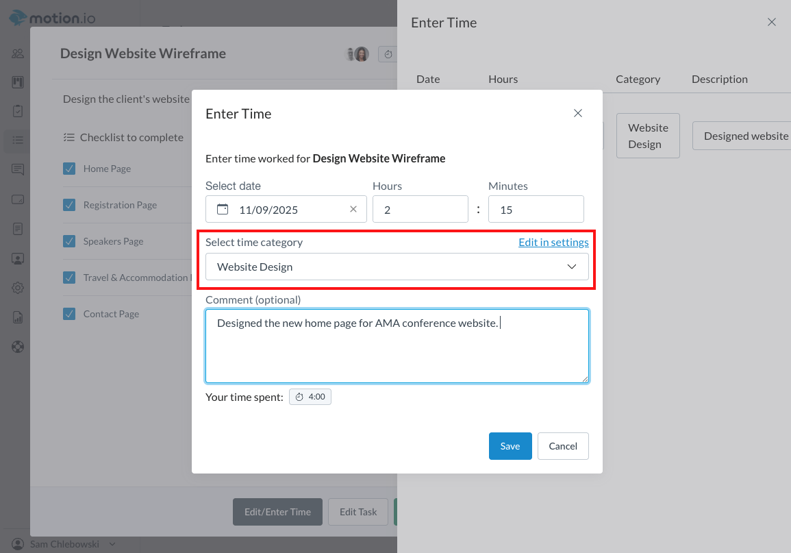 Time tracking in Motion.io lets you and your team log the hours or minutes spent completing tasks within client projects. To log time, team members have two options: by going to the "Tasks" page or by opening a project and going that project's task page.