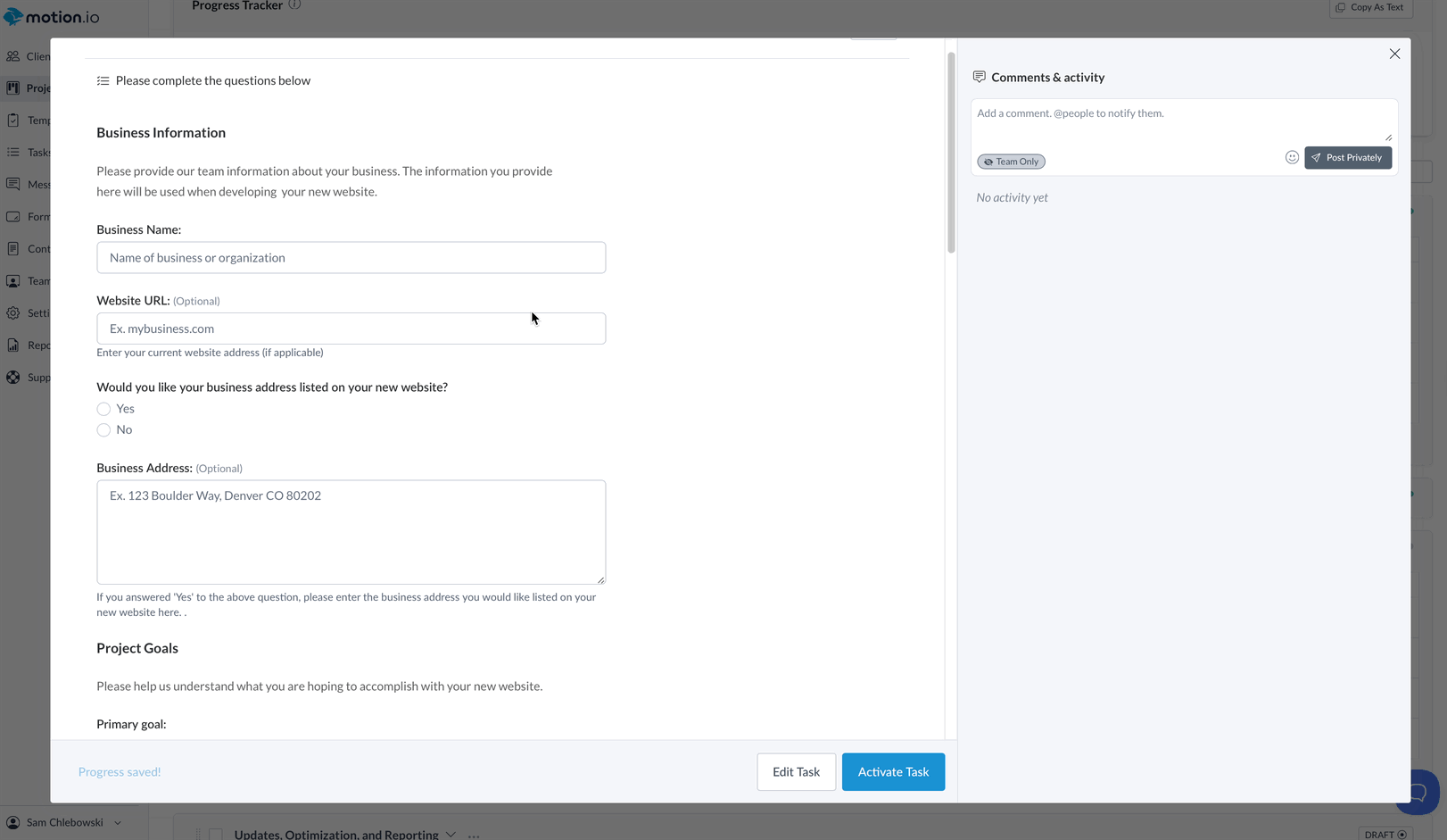 Once your form is saved, attach it to a task or Portal Tab to share it with your clients!