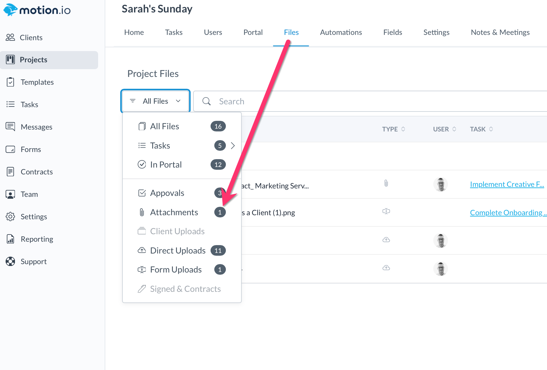 When creating client tasks, the Attach files task option enables you to attach all types of files and quickly send them to clients or team members for them to review and keep for their own records.
