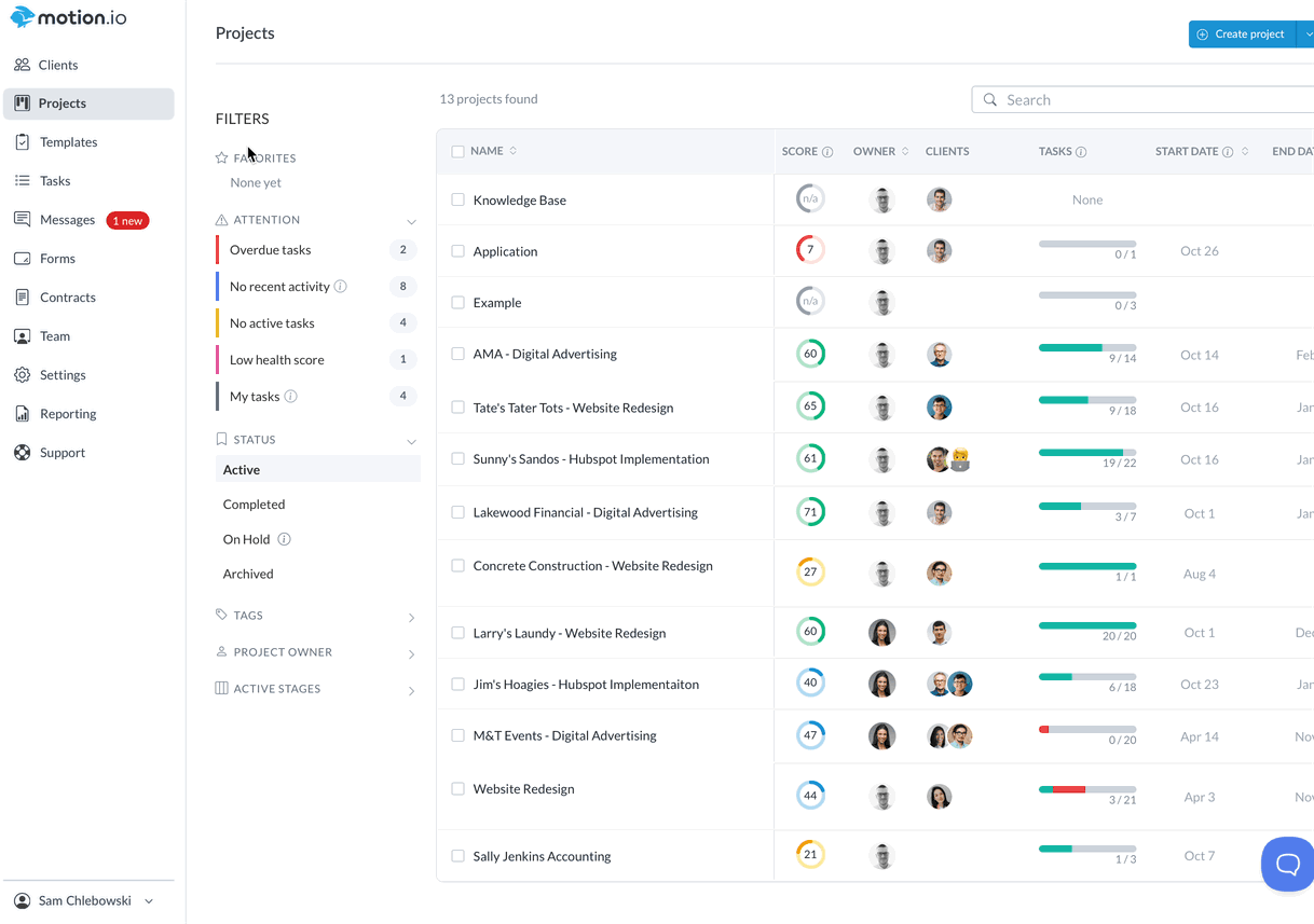 👋 Tip: Motion.io's Zapier integration allows you to create Zaps that automatically create a project from a template, invite clients, and assign tasks. This means you can fully automate your onboarding process by utilizing Zapier alongside the automation covered in this article!